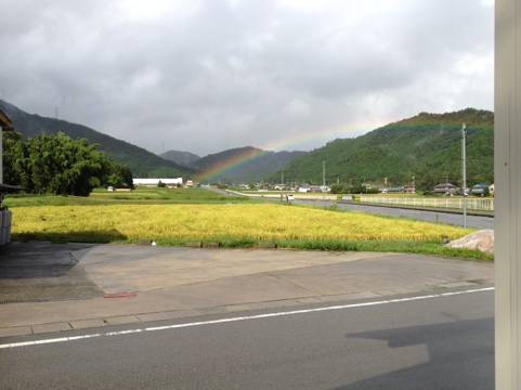 今日は朝から激しい雨が降ったと思ったら、太陽が顔を出したり、曇ったり(・_・; 土、日で稲刈りをする予定にいていた兼業農家さんには困った雨でした。 綺麗な虹は見れましたが…