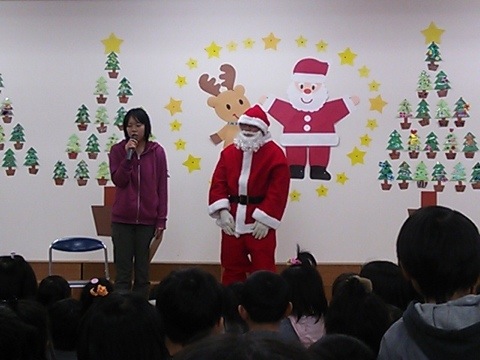 最後にサンタさんがやって来て、子供たちにプレゼントを渡してくれました‼ なぜか、そのサンタさんはアグリで研修している鎌塚くんでした(・_・;