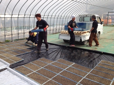 いよいよ始まりました。 苗だしより先に種まきがあったのですが、写真が撮れず… これから、ハウスの中で田植えが出来るまで温度や水分を調整しながら丈夫な苗に育苗していきます‼ 失敗すると、全て(収穫まで)がダメになってしまうので、一番神経を使う時期です(>_<) 農業の一年がスタートしました‼ 頑張ります‼