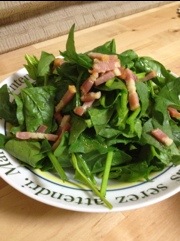 今日は、ほうれん草に炒めたベーコンを載せて、ホットドレッシング?(←妻がいうには…)をかけていただきました‼