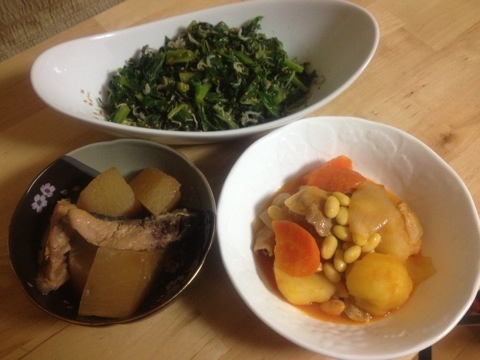 大根菜と金ごまとジャコの和え物。 ブリ大根。 ポークビーンズ。 ジャコ、ブリ、豚以外は全てアグリ産。 金ごま、大根菜、大根、白大豆、じゃがいも。 これからは、野菜が豊富に‼ 寒くて辛くなってきますが、野菜にとっては甘味、旨味が増す季節。 美味しい野菜が食べれる季節になってきました‼ 皆さんも、しっかり食べて風邪ひかないようにして下さいね。 良かったら、アグリのお野菜お試し下さい‼