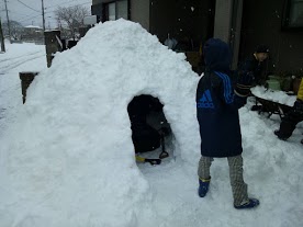 午前の部が終わっただけで、今もまだ、外でかまくら作りの続きをしております。