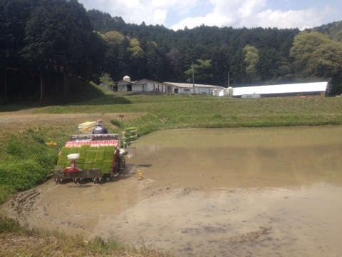 苗の植える数、肥料の量、タイミングといろんなことを考えながら、代表の原が田植えをします。