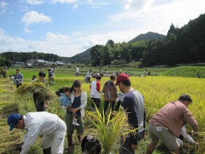 若い夫婦の方が多く小さい子供達が頑張って稲刈りをしてくれました。