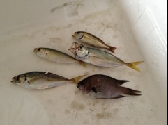 行ってスグに長女が、リールの糸を絡ませ、2時間近く釣りが出来ず…