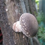去年の冬に山に原木を取りに行き、菌を打ち込んで湿気の多い所に置いていたんですが、去年の猛暑でダメになってしまったかと思ってあきらめていました。